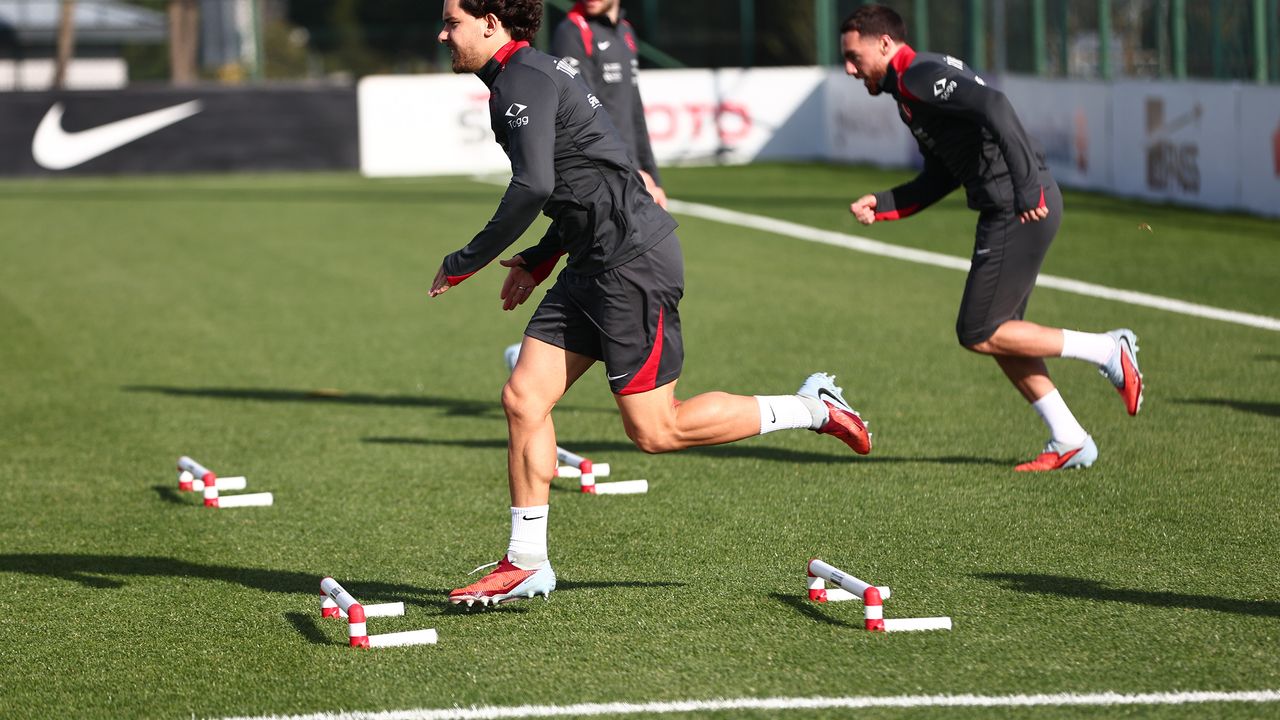 TFF Hasan Doğan Milli Takımlar Kamp ve Eğitim Tesisleri'nde teknik direktör Vincenzo Montella yönetimindeki antrenmanda ısınma bölümünün ardından sırasıyla rondo, çeviklik, taktik ve duran top çalışmaları yapıldı.