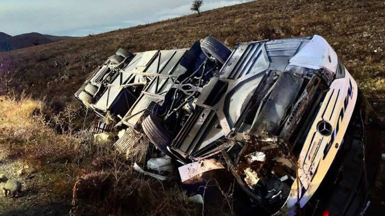 Afyonkarahisar'da yolcu otobüsü devrildi: 2 ölü, 21 yaralı / Fotoğraf