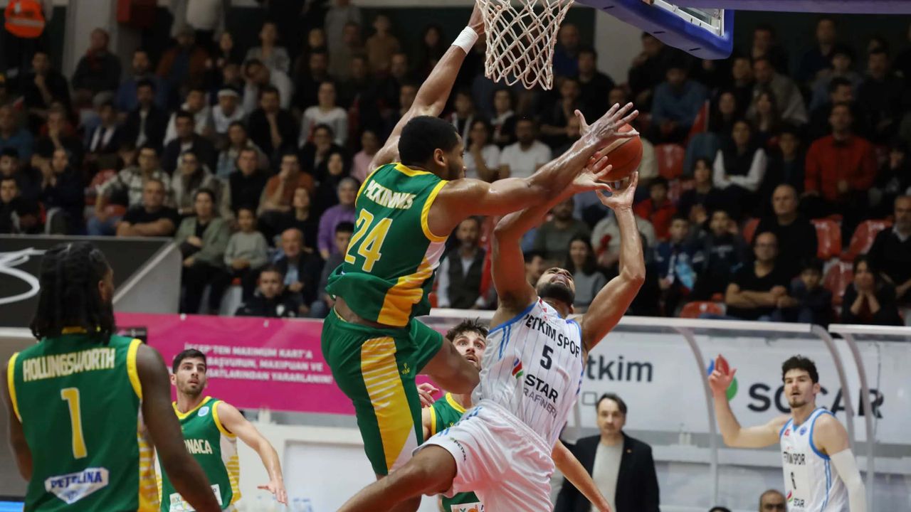 Aliağa Belediyesi Enka Spor Salonu'ndaki karşılaşmanın ilk çeyreğini 24-16 önde tamamlayan İzmir ekibi, ikinci periyotta farkı açarak soyunma odasına 51-20 üstün girdi. Üçüncü çeyrekte farkın kapanmasına için vermeyen Petkimspor, son bölüme girilirken 31 sayılık avantajı korudu: 73-42. Final periyodunda hata yapmayan ev sahibi ekip müsabakayı farklı kazandı: 101-58.