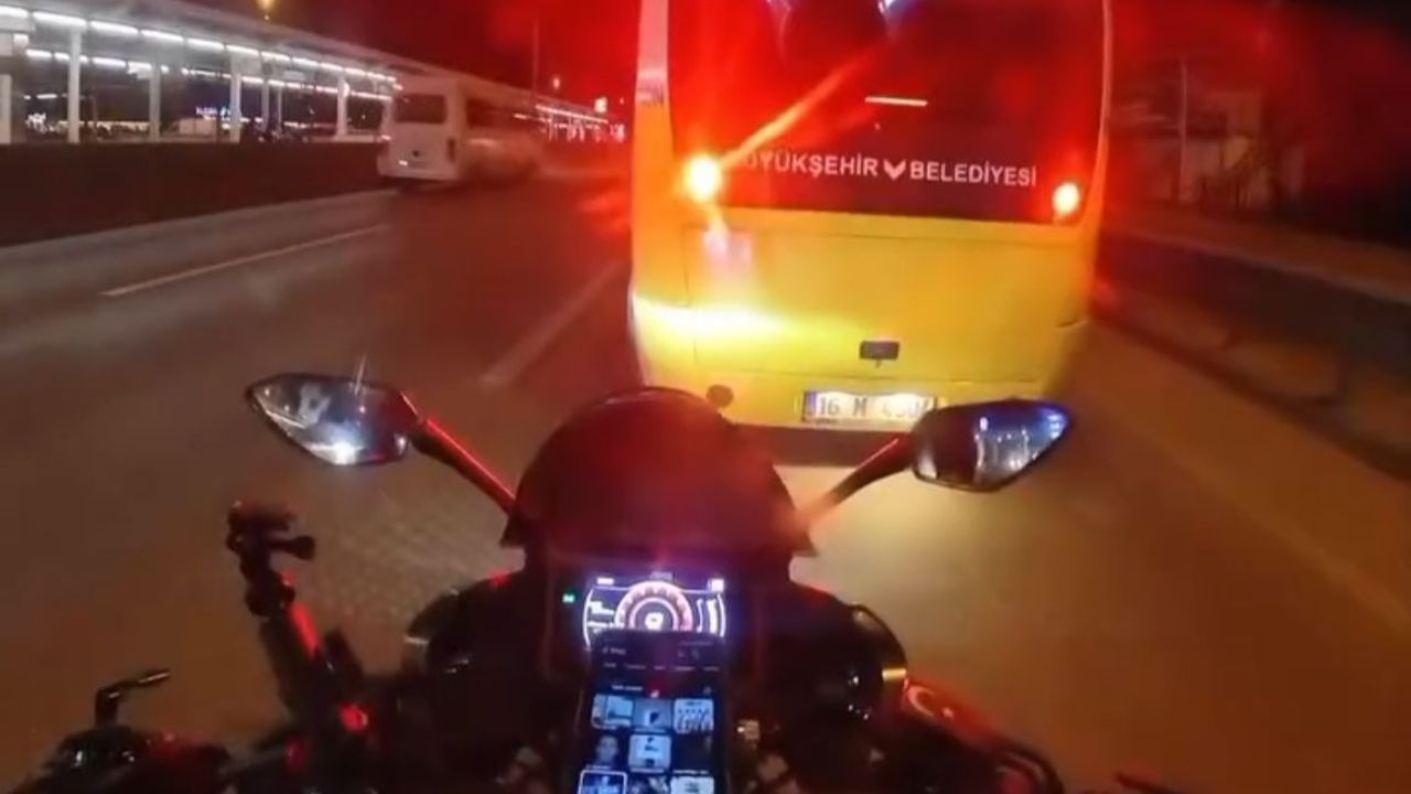 Kaza, Yıldırım ilçesi Ankara Yolu Caddesi'nde meydana geldi. Kent merkezi yönüne seyreden motosiklet, önünde duran belediye otobüsüne çarptı. Bu sırada "Allah'ım sana geliyorum" diyen motosikletlinin kaza yaptığı anlar, kask kamerasına yansıdı. Motosikletlinin kazayı yara almadan atlattığı öğrenildi. (DHA)