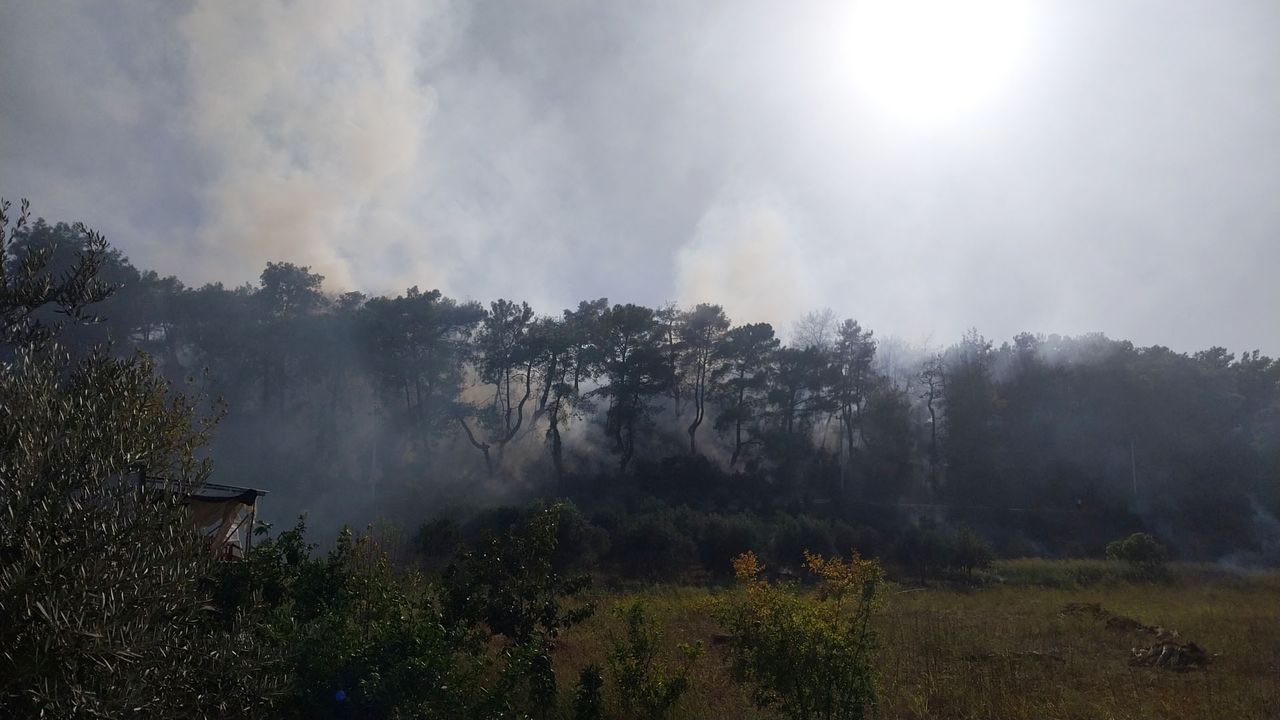 Manavgat'a bağlı Gültepe Mahallesi yakınlarındaki ormanda saat 16.00 sıralarında yangın çıktı. Sebebi henüz belirlenemeyen yangın bölgesine ekipler sevk edildi. Ekiplerin havadan ve karadan müdahale ettiği yangının kontrol altına alınmasına çalışılıyor. (DHA)