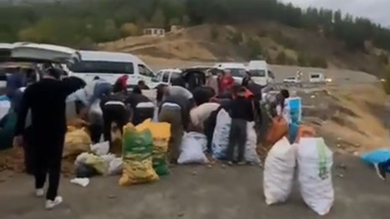 Olay, dün akşam, Baykan-Bitlis kara yolunda meydana geldi. Plakası öğrenilmeyen patates yüklü kamyonet arıza yapınca, sürücü aracı yol kenarına durdurdu. Sürücü, patatesleri yol kenarına boşaltıp, çevresindekilerin almasına izin verdi. Vatandaşların patatesleri poşetlere doldurup evlerine götürdükleri, bazı kişilerin ise araçlarının kasalarına yüklediği görüldü. O anlar, cep telefonu kamerasıyla kaydedildi.