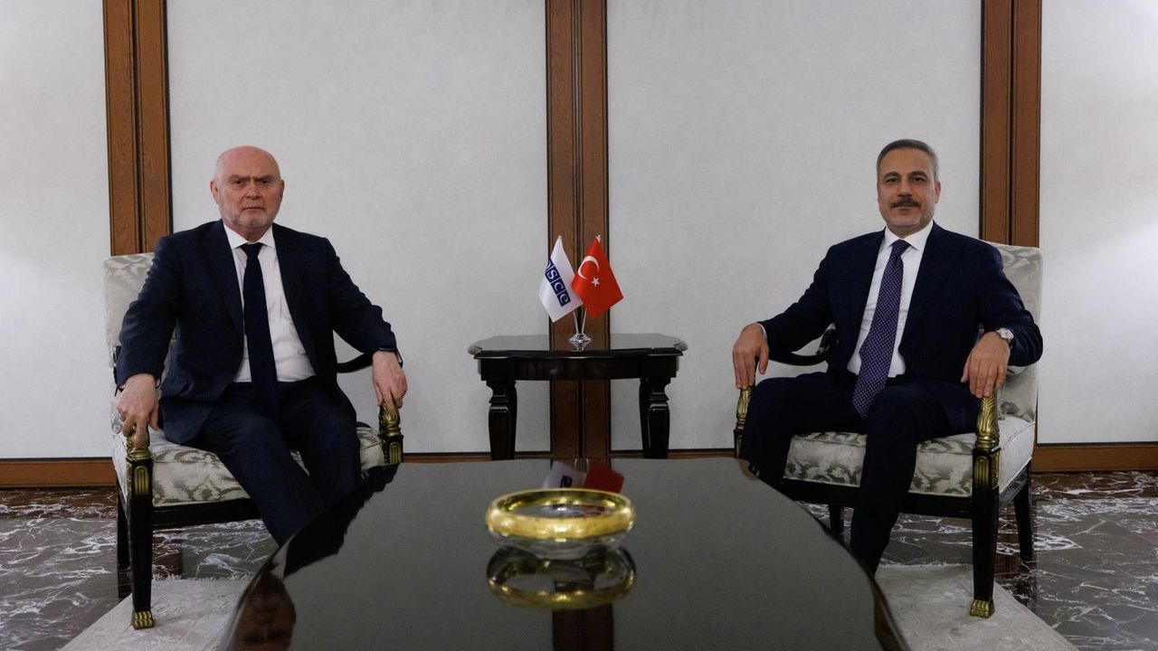 Dışişleri Bakanı Hakan Fidan, Avrupa Güvenlik ve İşbirliği Teşkilatı (AGİT) Genel Sekreteri Feridun Hadi Sinirlioğlu'nu Ankara'da kabul etti. (DHA)