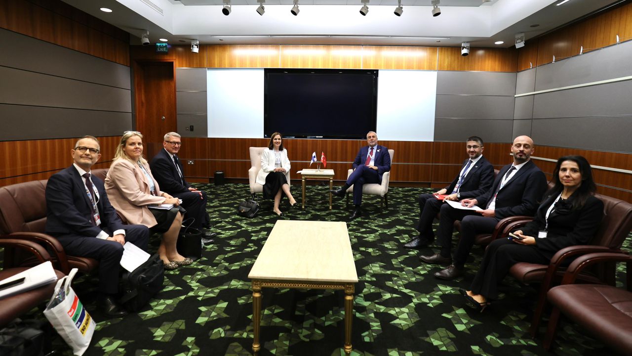ANKARA, (DHA)- ÇALIŞMA ve Sosyal Güvenlik Bakanı Vedat Işıkhan, 2’nci Dünya Sosyal Kalkınma Zirvesi'ne katılmak üzere gittiği Katar’ın başkenti Doha’da, Finlandiya Sosyal Güvenlik Bakanı Sanni Grahn-Laasonen ile bir araya geldi.