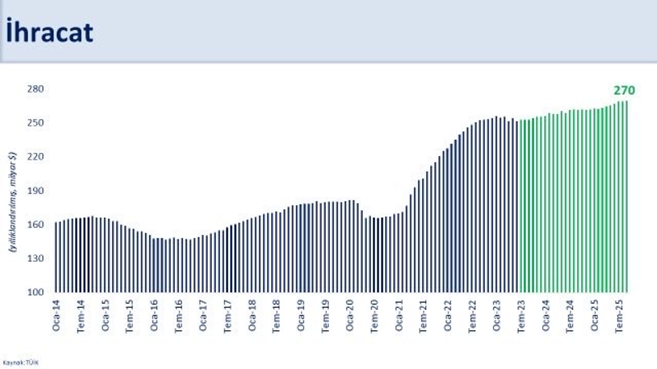 Hazine ve Maliye Bakanı Mehmet Şimşek, turizm ve dış ticaret istatistiklerine ilişkin sosyal medya hesabından açıklama yaptı. Bakan Şimşek, "Turizmdeki istikrarlı görünüm ve ihracat performansımız sürdürülebilir cari denge hedefimizi destekliyor. Üçüncü çeyrekte turizm geliri yıllık yüzde 3,9, ziyaretçi sayısı yüzde 1,9 arttı. Böylece yıllıklandırılmış turizm geliri 63,8 milyar dolara, ziyaretçi sayısı 63,1 milyona ulaştı. Eylülde yıllıklandırılmış ihracatımız yaklaşık 270 milyar dolara yükseldi. Markalaşma, sürdürülebilirlik ve yüksek katma değer odaklı politikalarla mal ve hizmet ihracatında rekabet gücümüzü artırmaya devam edeceğiz" dedi.