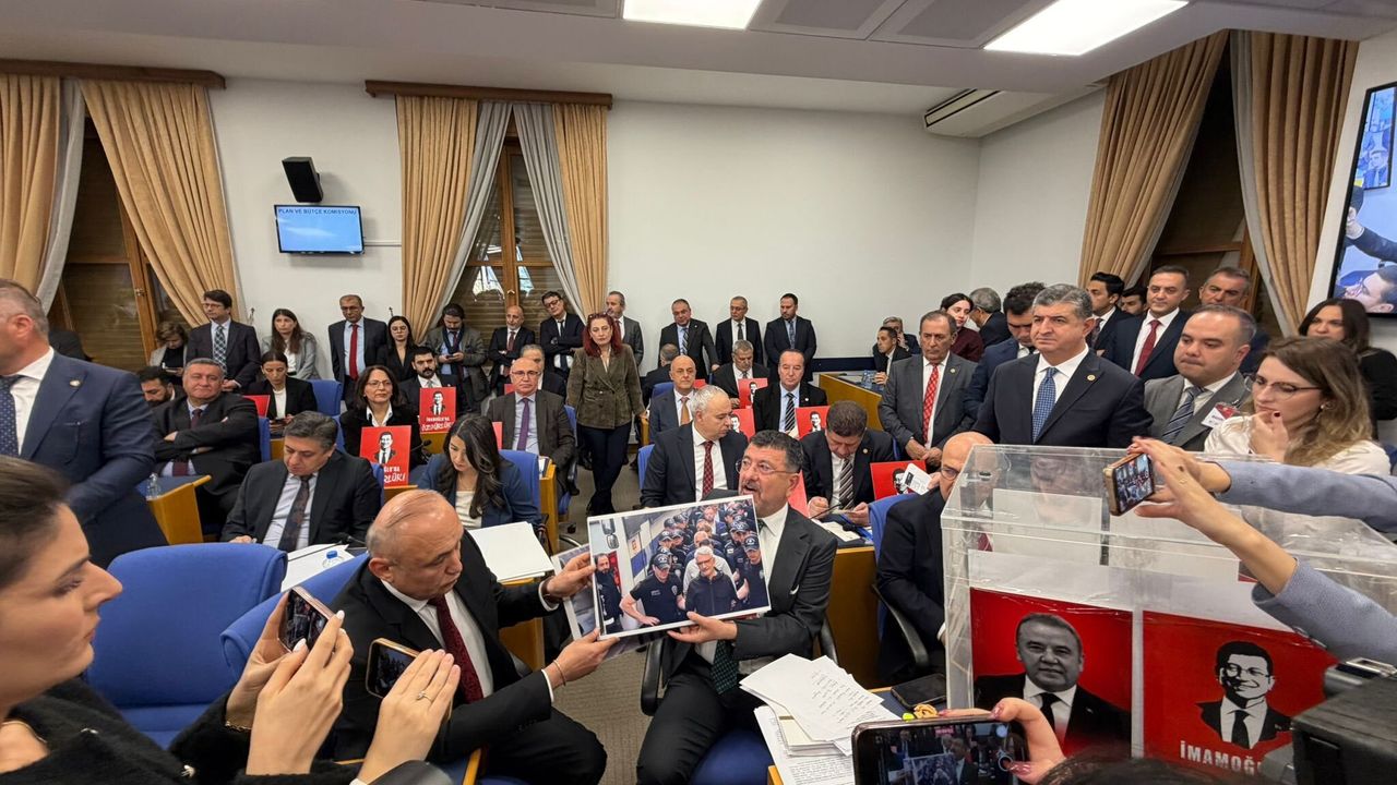 TBMM Plan ve Bütçe Komisyonu, İçişleri Bakanlığı'nın 2026 Yılı Merkezi Yönetim Bütçe Kanunu Teklifi ile 2024 Yılı Merkezi Yönetim Kesin Hesap Kanun Teklifi'ni görüşmek üzere AK Parti Samsun Milletvekili Mehmet Muş başkanlığında toplandı. CHP milletvekilleri, toplantıya görevinden uzaklaştırılan İstanbul Büyükşehir Belediye (İBB) Başkanı Ekrem İmamoğlu'nun görselinin bulunduğu ve üzerinde, 'İmamoğlu'na özgürlük' yazan dövizler ile tutuklu belediye başkanlarının fotoğrafları olan seçim sandığıyla katıldı. Bazı milletvekilleri tokalaşmak üzerine sıralarına gelen Bakan Yerlikaya ile tokalaşmadı.