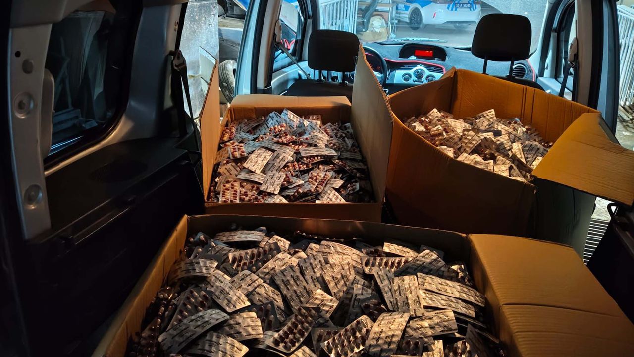 Balıkesir İl Emniyet Müdürlüğü Narkotik Suçlarla Mücadele Şube Müdürlüğü ile Edremit İlçe Emniyet Müdürlüğü Narkotik Suçlarla Mücadele Büro Amirliği ekipleri, istihbarat çalışmasıyla Burhaniye'de uyuşturucu sevkiyatı yapılacağı bilgisine ulaştı. Bunun üzerine ekipler, dün uyuşturucu madde sevkiyatı yapıldığı tespit edilen hafif ticari araca operasyon düzenledi. Durdurulan araçta ekiplerin aramasında koliler içerisinde toplam 95 bin 620 sentetik hap ele geçirildi. Otomobildeki S.A., gözaltına alındı. Şüpheli S.A., polisteki işlemlerinin ardından sevk edildiği adliyede çıkarıldığı mahkemece tutuklandı. (DHA)