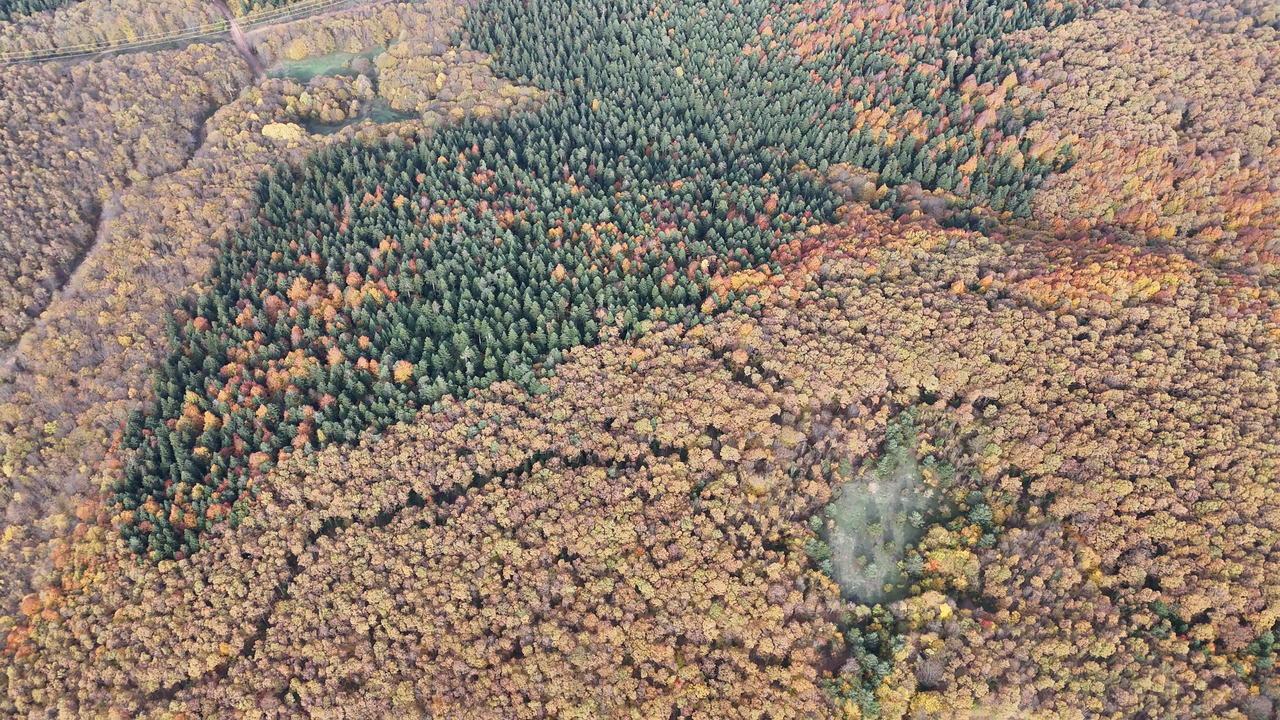 Murat KÜÇÜK/BOLU, (DHA)- BOLU'nun Avdan köyü yakınlarındaki ormanlarda sonbahar nedeniyle renk cümbüşü yaşanıyor. Eşsiz manzara, dronla görüntülendi.