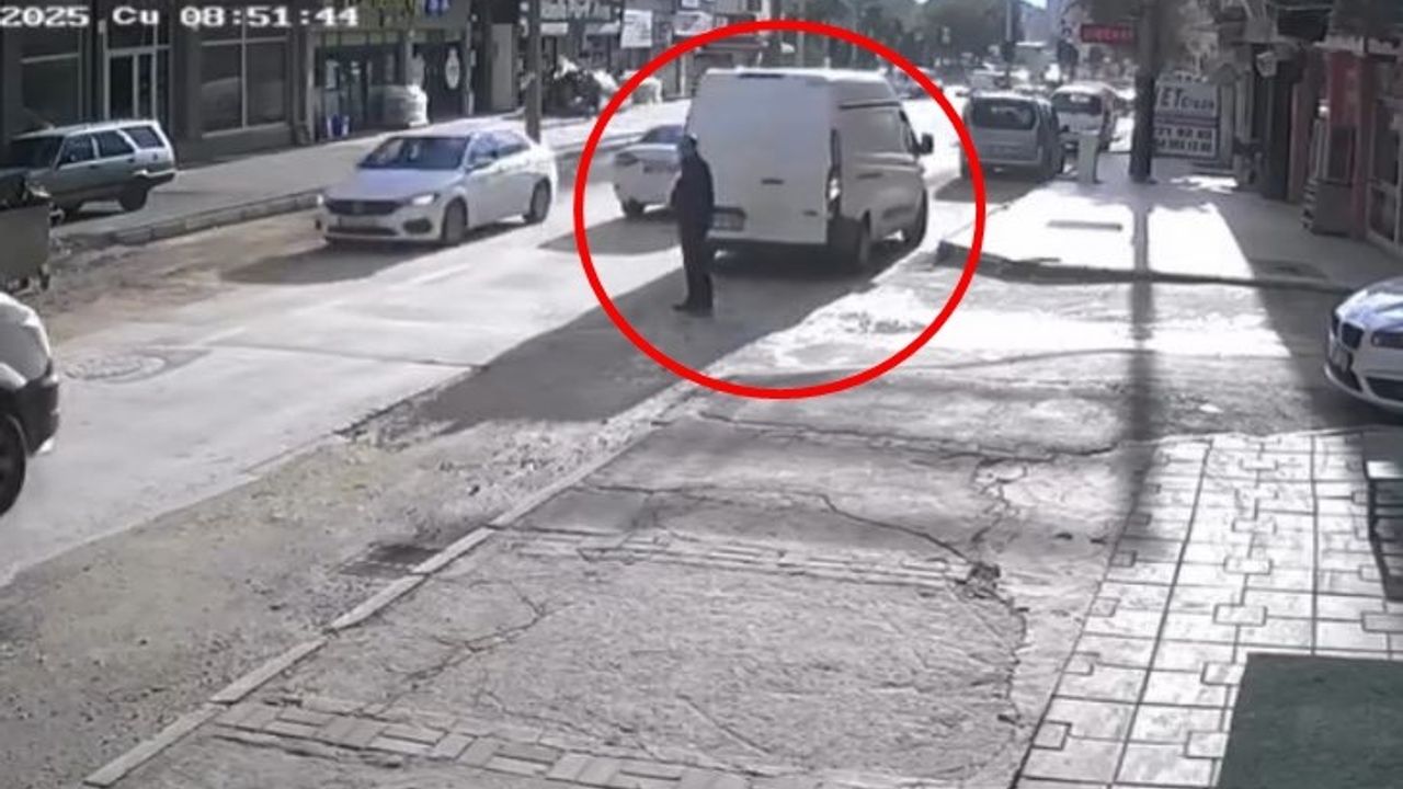 BURSA’da, sürücüsünün geri manevra yaptığı kapalı kasa minibüs, bu sırada arkasında yürüyen yayaya çarptı. O anlar bir iş yerinin güvenlik kamerasına yansıdı.