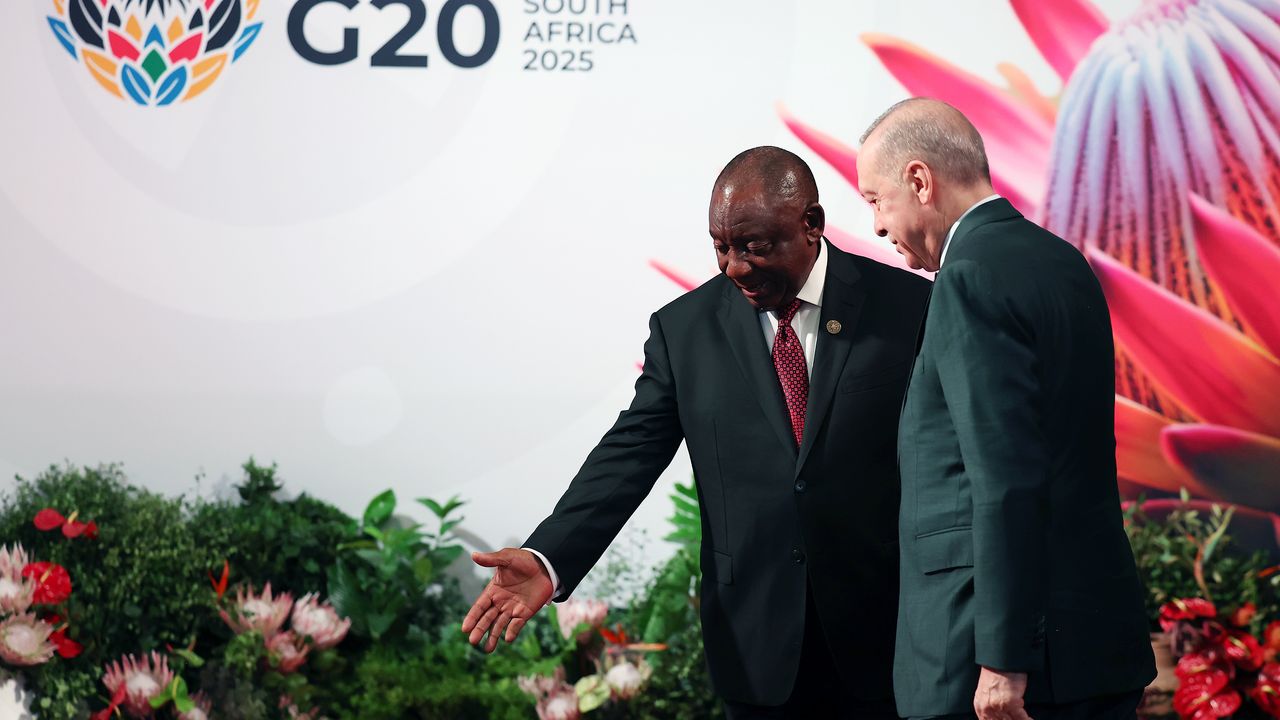 Cumhurbaşkanı Recep Tayyip Erdoğan, zirvenin düzenlendiği Johannesburg Expo Center'a gelerek, G20'ye ev sahipliği yapan Güney Afrika Cumhurbaşkanı Cyril Ramaphosa tarafından karşılandı. Cumhurbaşkanı Erdoğan, Ramaphosa ile tokalaşarak, hatıra fotoğrafı çektirdi.
