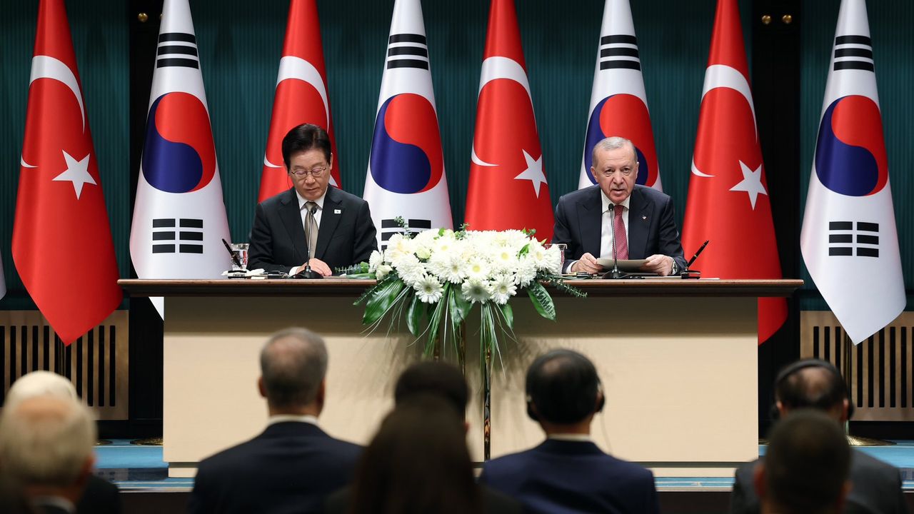 Cumhurbaşkanı Recep Tayyip Erdoğan ile Güney Kore Cumhurbaşkanı Lee, anlaşmaların imza törenini gerçekleştirdi, ardından ortak basın toplantısı düzenledi. Burada konuşan Erdoğan, "Sayın Cumhurbaşkanına haziran ayında göreve başladıktan sonra bir mesajla tebriklerimi iletmiş, bir telefon görüşmesi yapmıştık. Kendisi hayatın zorluklarıyla daha çocuk yaşta tanışmış, doğru bildiği yolda kararlılıkla yürümüş ve ülkesine yaptığı hizmetlerle Kore halkının teveccühünü kazanmış bir liderdir. Sayın Cumhurbaşkanına yüksek vazifesinde bir kez de sizlerin huzurunda muvaffakiyetler diliyorum. Uzun yıllardan sonra Güney Kore'den Cumhurbaşkanı düzeyinde bir devlet ziyareti gerçekleşmesinden ayrıca memnuniyet duyuyoruz" dedi.