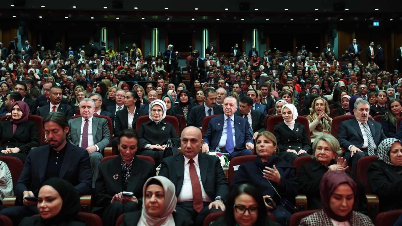 Türkiye'nin son 23 yılda, şiddet meselesi başta olmak üzere kadınların hak ve hukuklarının teslimi konusunda başarı kaydettiğini belirten Erdoğan, "Sıfır tolerans yaklaşımıyla kadına ve çocuğa yönelik şiddetle etkin bir şekilde mücadele ettik. İş hayatından siyasete, akademiden bürokrasiye her alanda kadınları güçlendirmenin gayretinde olduk. 2002'de kadınların iş gücüne katılım oranı yüzde 27,9'du. 2025 Eylül ayı itibarıyla bu rakam yüzde 35,7'ye yükseldi. Aynı dönemde kadın istihdam oranı ise yüzde 25,3'ten yüzde 31,8'e çıktı. 2002 genel seçimlerinde, kadın milletvekillerinin sayısı 24, kadın temsil oranı ise sadece yüzde 4,4'tü. 2023 Mayıs seçimleriyle kadın milletvekillerinin sayısı 119'a, temsil oranı ise 5 kat artarak yüzde 19,83'e yükseldi. Kadın kamu çalışanlarının oranı ise ciddi artış gösterdi. 2024 yılı itibarıyla 43,46'ya ulaştı. Bu başarıların altına imzalarını atan tüm hanım kardeşlerimizi şahsım ve milletim adına yürekten tebrik ediyorum" dedi.
