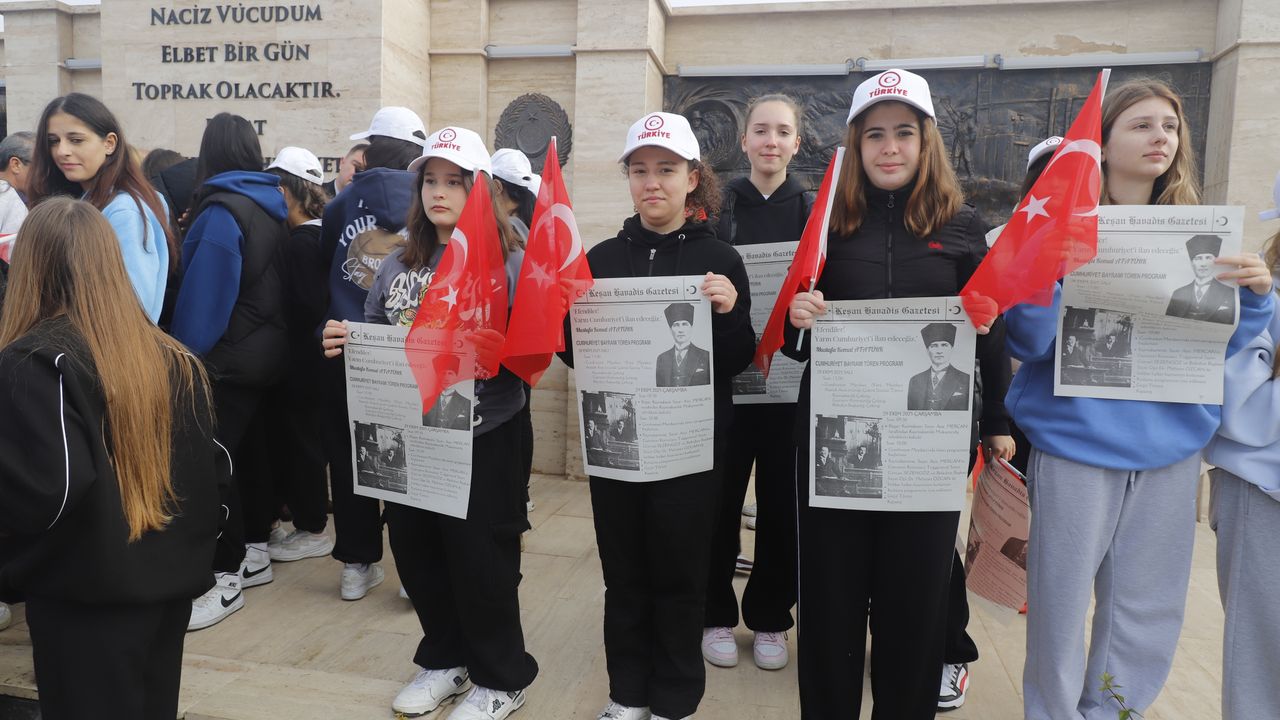 EDİRNE’nin Keşan ilçesinde 29 Ekim Cumhuriyet Bayramı etkinlikleri kapsamında 102 öğrenci, 102 yıl önce olduğu gibi Cumhuriyet'in yarın ilan edileceğini duyuran ve kutlama programının yer aldığı gazeteler ile Türk bayrağı ve şapka dağıttı.