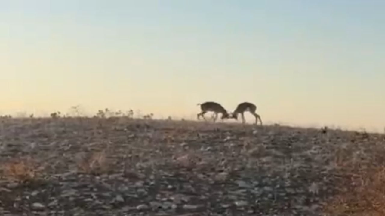 Ferhat DERVİŞOĞLU/KIRIKHAN (Hatay), (DHA)- HATAY'ın Kırıkhan ilçesinde iki erkek dağ ceylanının (gazella gazella) kafa kafaya verdiği mücadele, cep telefonuyla görüntülendi.