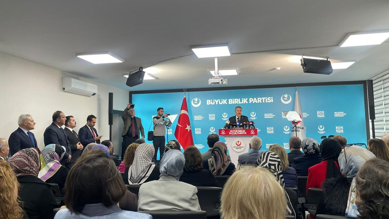 'Terörsüz Türkiye' sürecine ilişkin konuşan Destici, "İnsanlık tarihinin en karanlık suç örgütlerinden birisi olan terör örgütü PKK'yı Kürtlerin temsilcisiymiş gibi kabul etmek gerçeklere, hukuka, insanlığa en çok da Kürt kardeşlerimize yapılmış büyük bir haksızlıktır. Niye onların temsilcisi bir kanlı terör örgütü olsun, bir hain terör örgütü olsun? Onların da milletvekilleri var, onların da belediye başkanları var, sivil toplum örgütleri var. Biz varız, bütün siyasi partiler var. Büyük Birlik Partisi'nin, Güneydoğu'nun bütün ilçelerinde teşkilatı var, belediyesi var. Meclis'te kurulan komisyonun adını değiştirdiler. Terör kelimesinden rahatsız olmuşlar. Sanki 41 yıldır terör yapan onlar değil. Suriye'nin kuzeyinde neredeyse devletleştiler. Irak'ın kuzeyinde varlıkları devam ediyor, Irak'ın kuzeyinde, İran'ın güneyinde devam ediyor, Avrupa'da devam ediyor, Amerika'da devam ediyor, her yerde devam ediyor. Topyekun silah bırakma, topyekun kendini feshetme gördük mü, görmedik. Batı'nın 150 yıldır iliğini kemiğini sömürdükleri bölgemizde, yağmaya devam etmek için kurdukları, sivilleri öldürmeleri için 40 yıl boyunca silah, para, erzak yağdırdıkları çakal sürüsü taltif edilirken, hayatları pahasına terörle mücadele eden güvenlik güçlerimizin mensupları şehitlerimizin değerli aileleri ve en çok da her şartla devletinin milletinin yanında durmuş, bölgede yaşayan vatandaşlarımız maalesef bu süreçte rencide edilmektedir" diye konuştu.