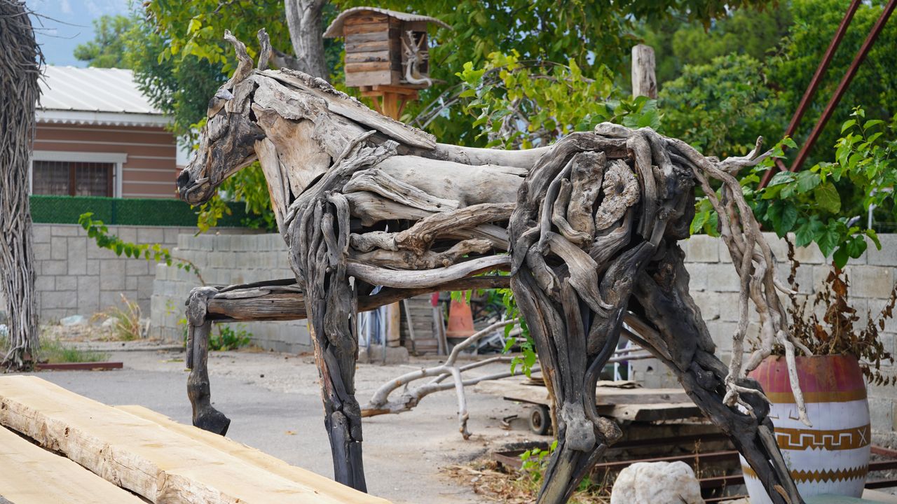 Kentte yaşayan driftwood sanatçısı Osman Dönmez, orman, dağ ve dere yataklarında doğanın kendi döngüsüyle devrilmiş veya dağılmış ağaç parçalarını toplayarak heykeller yapıyor. Doğadan aldığı parçaları yeniden doğaya kazandıran Dönmez, "Doğayı sevdiğim için doğadan ilham alıyorum. Bu malzemeleri birleştirip, hayvan figürlerine dönüştürüyorum" dedi. Atık ağaçlardan yaptığı heykellerin yapım sürecinin uzun ve titiz bir çalışma gerektirdiğini anlatan Dönmez, "Topladığımız parçaları temizleme aşamasından geçiriyoruz, sonra kaide veya iskelet üzerine yerleştirme süreci başlıyor. Günde 3 ila 5 parça üzerinde çalışıyorum. Bir heykelin tamamlanması yaklaşık 1 ayı buluyor" diye konuştu.