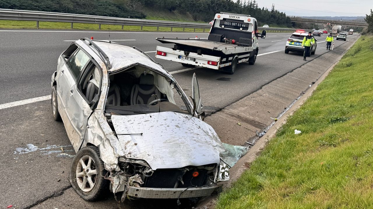 Kaza, öğle saatlerinde, Anadolu Otoyolunun Kaynaşlı mevkisinde meydana geldi. İstanbul yönüne giderken M.E.’nin (60) kontrolünü kaybettiği 35 EC 695 plakalı otomobil, yol kenarındaki beton su kanalına çarptıktan sonra takla attı. Yoldan geçen diğer sürücülerin ihbarı üzerine kaza yerine sağlık ve jandarma ekibi sevk edildi. Sürücü M.E. ile yanındaki H.E. (54) yaralandı. Yaralılar gelen sağlık ekipleri tarafından kaldırıldığı hastanede tedavi altına alındı. Yaralılardan H.E.’nin sağlık durumunun ciddiyeti koruduğu belirtildi.