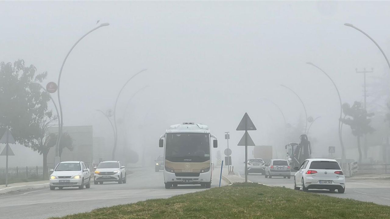 EDİRNE'de sabah saatlerinden itibaren etkili olan sis nedeniyle görüş mesafesi 50 metreye kadar düştü.