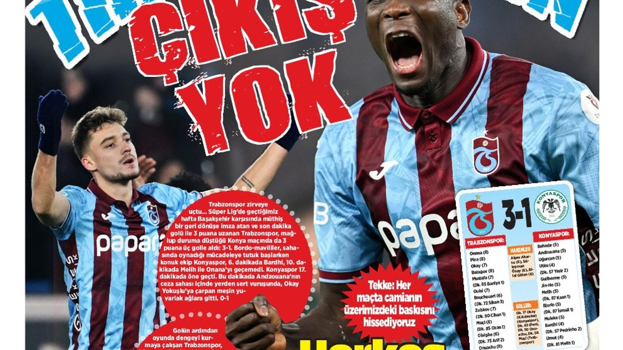 Öte yandan Trabzon’da yayın yapan yerel gazeteler ise Trabzonspor’un Konyaspor karşısında elde ettiği galibiyeti manşetlerine farklı başlıklarla taşıdı. Trabzon yerel basın manşetleri şu şekilde: