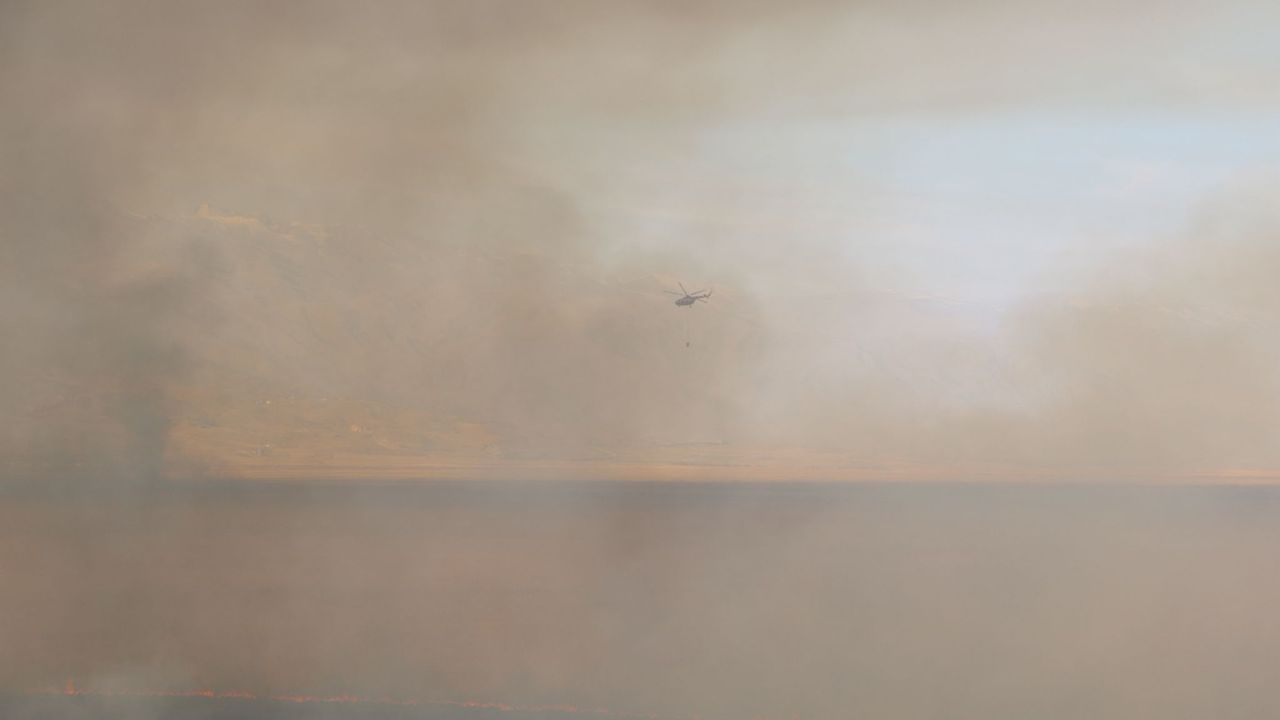 Yaşar KAPLAN/YÜKSEKOVA (Hakkari), (DHA)- HAKKARİ'nin Yüksekova ilçesinde çok sayıda kuş türüne ev sahipliği yapan Nehil Sazlığı'nda çıkan yangına yangın söndürme helikopteri ile müdahale ediliyor.