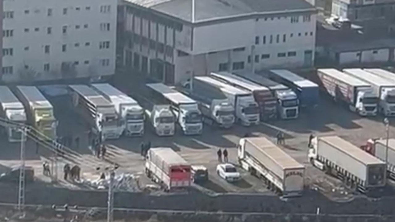 Diğer yandan İstasyon Mahallesi'ndeki TIR garajında da saygı duruşunda bulunan çalışanlar, cep telefonlarıyla görüntülendi. (DHA)