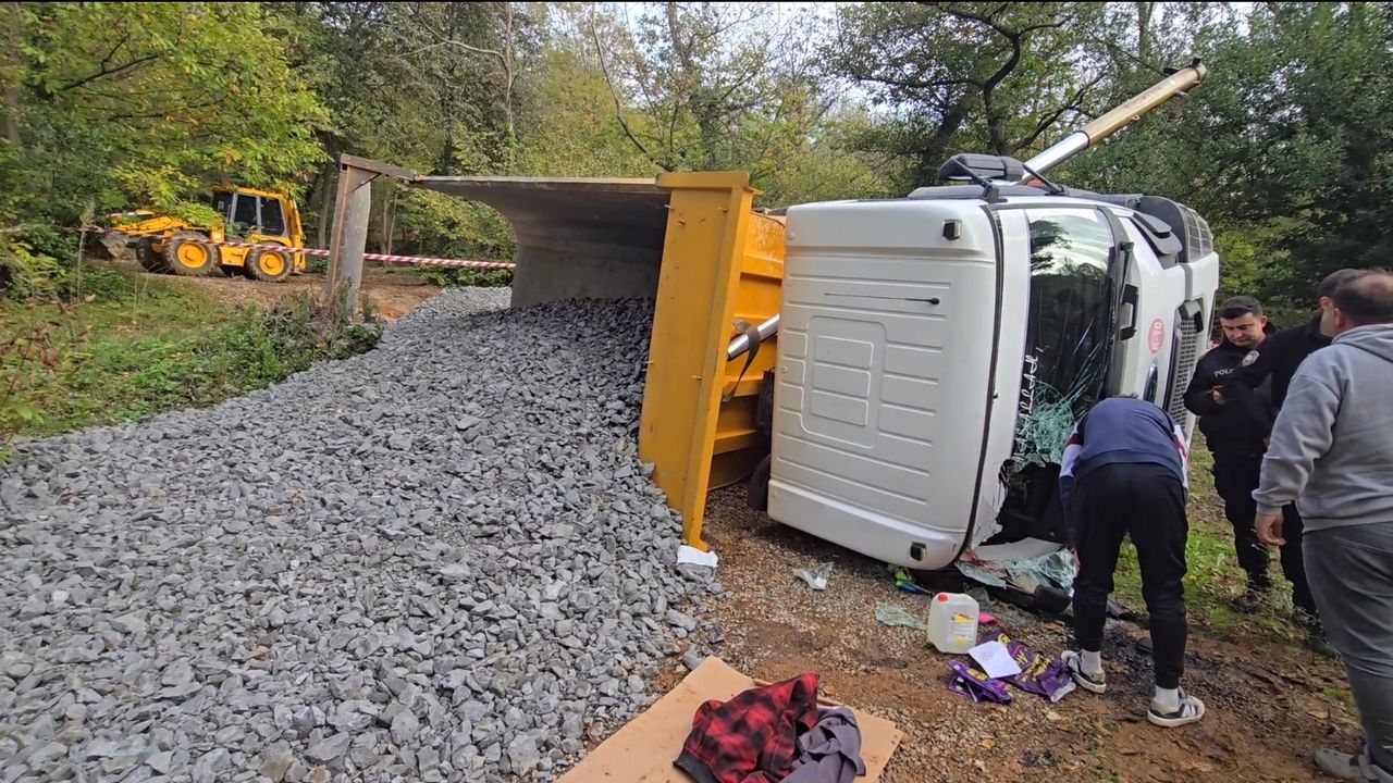 Kaza saat 15.15 sıralarında Beykoz Kaymakdonduran mevkiinde meydana geldi. İddiaya göre, M.Ç. idaresindeki 06 DNF 966 plakalı mıcır yüklü kamyon toprak yolda ilerlediği sırada sürücüsünün direksiyon hakimiyetini kaybetmesi sonucu devrildi.Kamyonda yüklü bulunan mıcır çevreye dağılırken, kazada kamyon şoförü M.Ç.yaralandı.İhbar üzerine olay yerine itfaiye sağlık ve polis ekipleri sevk edildi. İlk müdahalesi olay yerinde yapılan yaralı sürücü, ambulansla Ümraniye Eğitim ve Araştırma Hastanesi’ne kaldırıldı.Kamyonun yoldan kaldırılması için çalışma başlatılırken, kazayla ilgili inceleme sürüyor. (DHA)