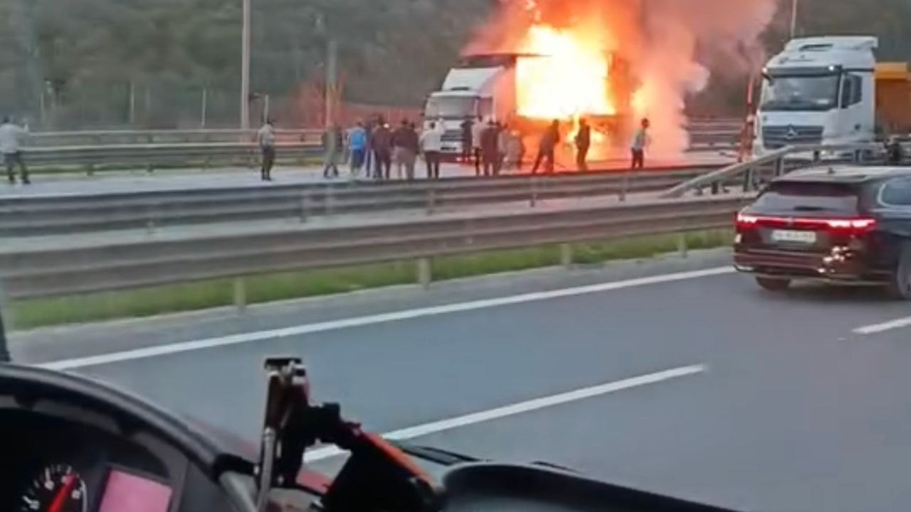 Yangın, saat 17.15 sıralarında Kuzey Marmara Otoyolu Ankara istikametinde çıktı. Otoyolda seyreden kamyonun kasasında bilinmeyen bir nedenle çıkan yangın kısa sürede büyüdü. Çevredekilerin ihbarı üzerine adrese itfaiye, acil sağlık ve polis ekipleri geldi. Alevler itfaiye ekipleri tarafından söndürüldü. Sağlık ekiplerinin kontrollerinde yangında yaralanan kimsenin olmadığı belirlendi. Kamyonun alev alev yandığı anlar çevredeki kişiler tarafından cep telefonu ile kaydedildi.