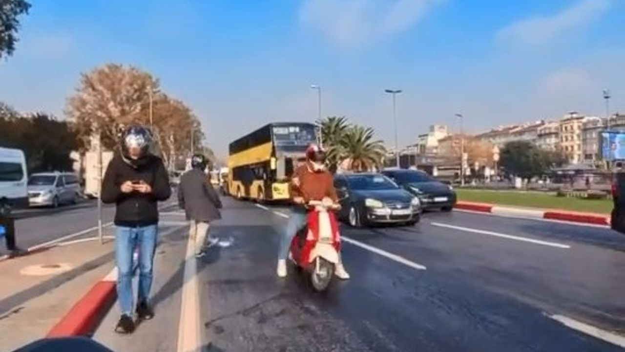 Fatih’te, yola dökülen yağ nedeniyle kayganlaşan zeminde ilerleyen motosikletliler peş peşe kayarak düştü. Bazı sürücüler ise düşen motosikletlilerin uyarıları sayesinde son anda kazadan kurtuldu. O anlar cep telefonu kamerasına yansıdı.