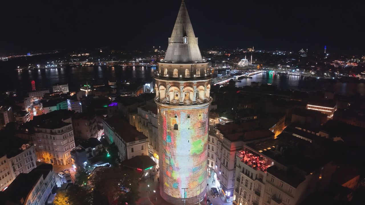 Ticaret Bakanlığı tarafından Elektronik Ticaret İşletmecileri Derneği (ETİD) ile Türkiye Odalar ve Borsalar Birliği (TOBB) Türkiye E-Ticaret Meclisinin katkılarıyla kutlanan 'E-Ticaret Haftası' 21-22 Kasım tarihlerinde İstanbul Lütfi Kırdar Kongre Merkezi’nde gerçekleşecek. 90 milyar dolarlık hacme ulaşan e-ticaret sektörü, Türkiye ekonomisinin en hızlı büyüyen alanlarından biri haline gelirken; etkinlik, dijital dönüşümün tüm paydaşlarını aynı çatı altında buluşturacak. Yatırımcılardan girişimcilere, pazar yerlerinden KOBİ’lere, lojistik ve ödeme sistemleri şirketlerinden akademisyenlere kadar uzanan geniş bir ekosistem, geleceğin ticaretini yeniden tanımlayacak. 'E-Ticaret Haftası' kapsamında Galata Kulesi'nde lazer gösterisi düzenlendi. Lazer gösterisi dronla havadan görüntülendi. (DHA)