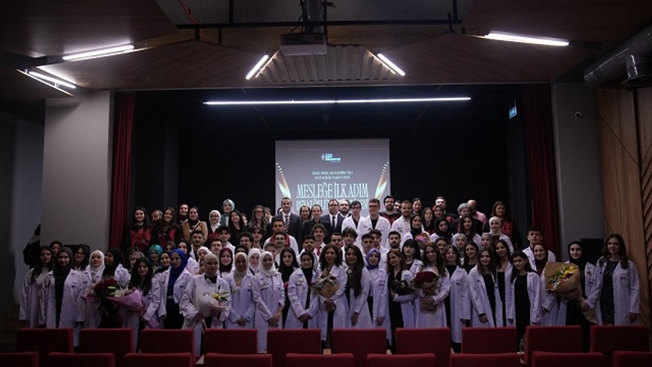 İSTANBUL, (DHA)- İSTANBUL Kent Üniversitesi Eczacılık Fakültesi'nde ‘Beyaz Önlük Giyme Töreni’ düzenlendi. Kağıthane Kampüsü’nde gerçekleşen törende, eczacılık mesleğinin saflığını, etik sorumluluğunu ve bilimsel geleneğini temsil eden beyaz önlükler öğrencilerin omuzlarına öğretim üyeleri tarafından takdim edildi.