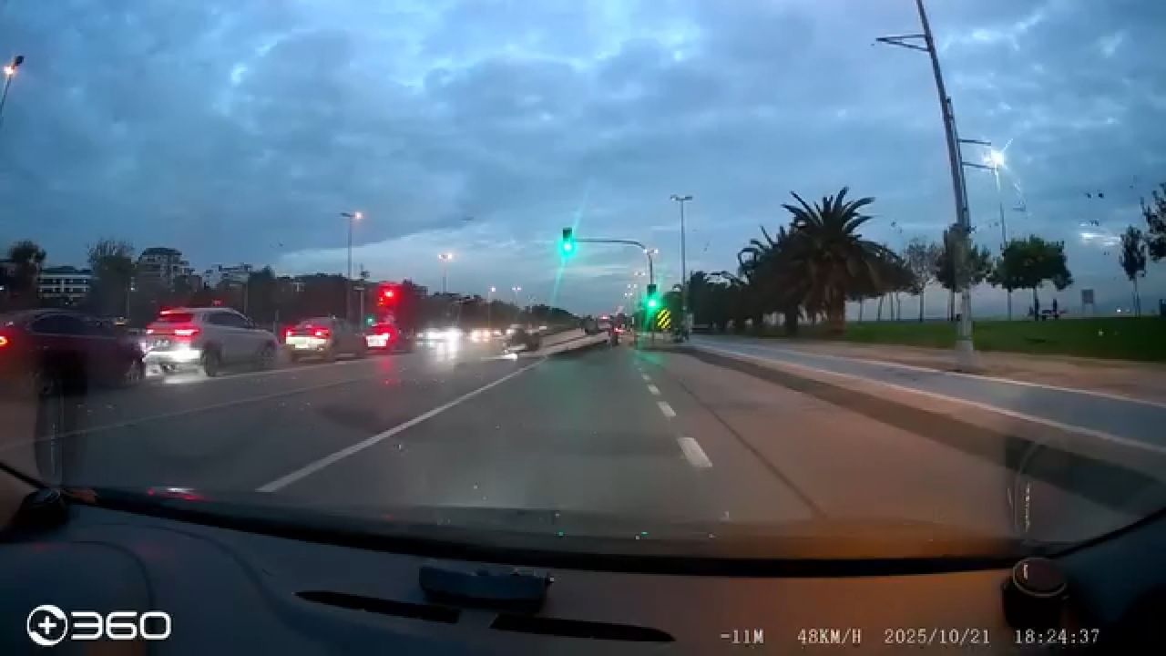 Sahil yolunda makas atarak ilerleyen otomobilin kontrolden çıkarak takla atması, başka bir otomobilin araç içi kameralarına yansıdı. Görüntülerde otomobilin makas atarak trafikte ilerlediği, kontrolden çıkan otomobilin takla atarak metrelerce sürüklendiği görülüyor.