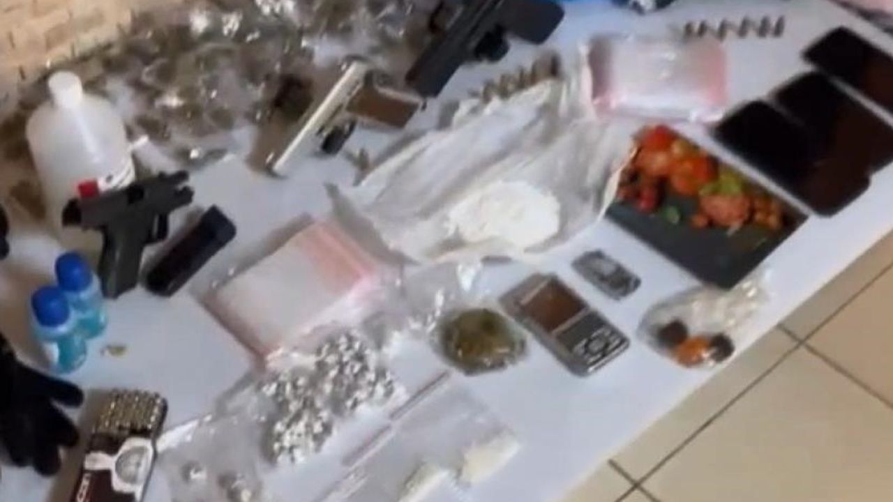 Rezidanstaki daireye giren ekipler, içerideki G.D. ve O.A.’yı yakaladı. Dairede yapılan aramalarda, 4 ruhsatsız tabanca, 4 şarjör, 20 fişek, 635 gram marihuana, 27 gram taş kokain, 53 gram kokain, 172 gram uyuşturucu yapımında kullanılan sıvı, 42 gram uyuşturucu katkılı şeker, 30 gram uyuşturucu katkılı kek, 2 gram amfetamin, 430 gram amonyak, 3 hassas terazi, 3 cep telefonu, 10 bin 650 lira para, çok sayıda klipsli poşet ve alüminyum folyo ele geçirildi.