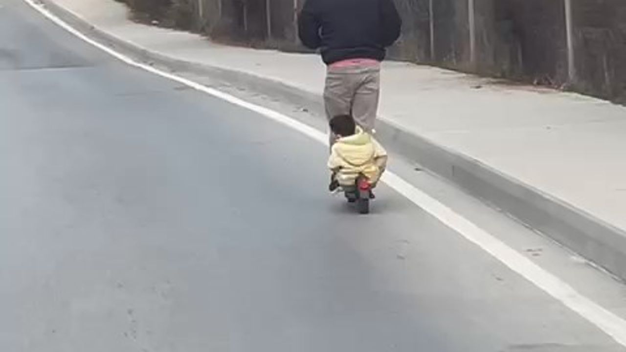 Görüntüler, dün öğle saatlerinde Yunus Emre Mahallesi Adem Yavuz Caddesi'nde kaydedildi. Araç trafiğinin yoğun olduğu caddede bir kişi, elektrikli skuterın arkasına küçük çocuğunu da alarak ilerlemeye başladı. Trafikte tehlikeli şekilde ilerleyen sürücüyü fark eden başka bir araç sürücüsü, o anları cep telefonu kamerasıyla görüntüledi.
