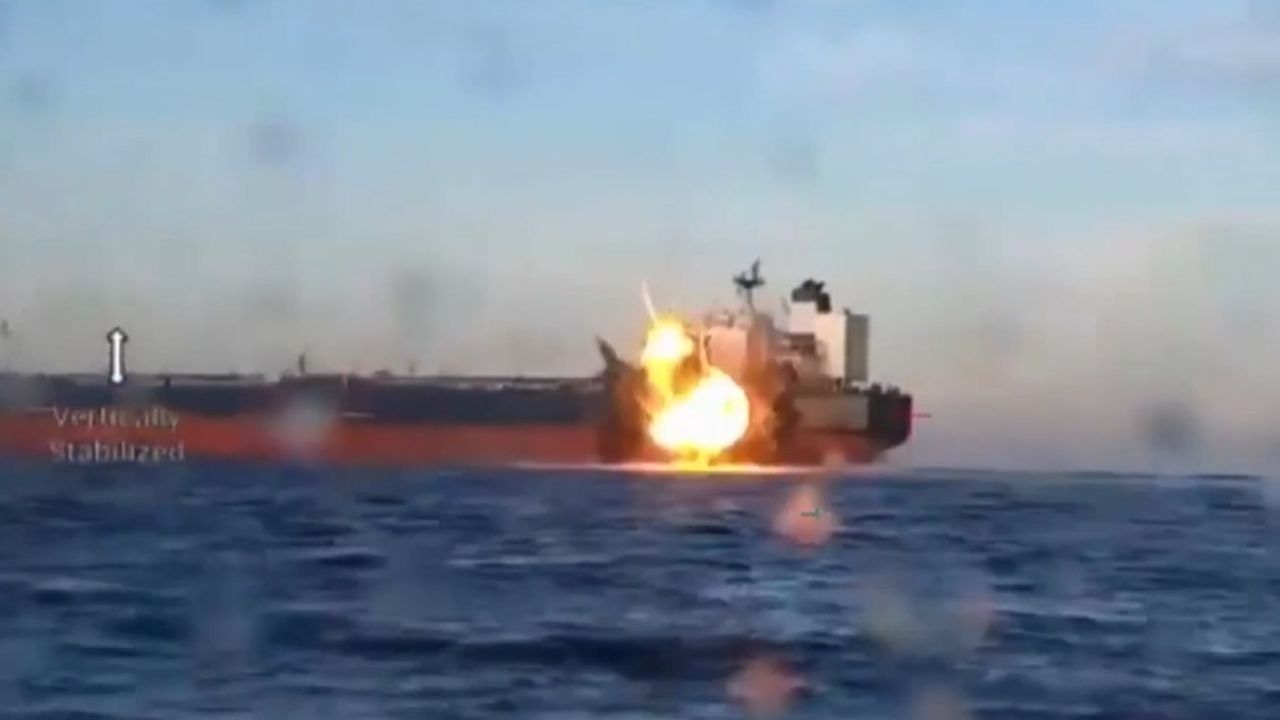 Konuya ilişkin paylaşılan görüntülerde, insansız deniz araçlarıyla gemilere saldırı düzenlendiği ve patlamaların yaşandığı görülüyor.