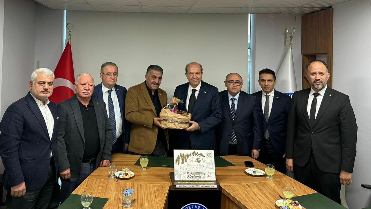 Mehmet DOĞANER/ERDEMLİ,(Mersin), (DHA) - KUZEY Kıbrıs Türk Cumhuriyeti'nin (KKTC) 5'inci Cumhurbaşkanı Ersin Tatar, Mersin temasları kapsamında Erdemli Ticaret ve Sanayi Odası (ETSO)'nu ziyaret etti. Tatar, ziyarette ETSO Yönetim Kurulu Başkanı Mustafa Karagöz ve oda meclis üyeleri ile bir araya geldi.