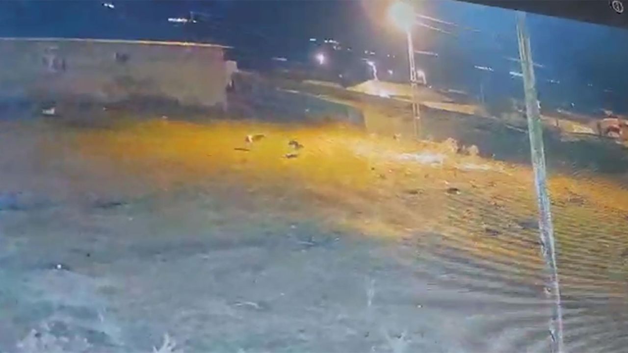 KARS'ta havaların soğumasıyla birlikte yiyecek bulmakta zorluk çeken 4 kurt, indikleri köyde köpeğe saldırdı. O anlar, güvenlik kamerasına yansıdı.