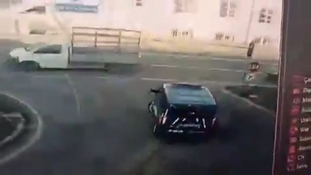 Bu arada kaza, mobese kamerasına yansıdı. Görüntüde, jandarma minibüsünün kavşaktan dönüş almasının ardından arkasından gelen makam aracının çarptığı anlar yer aldı. (DHA)