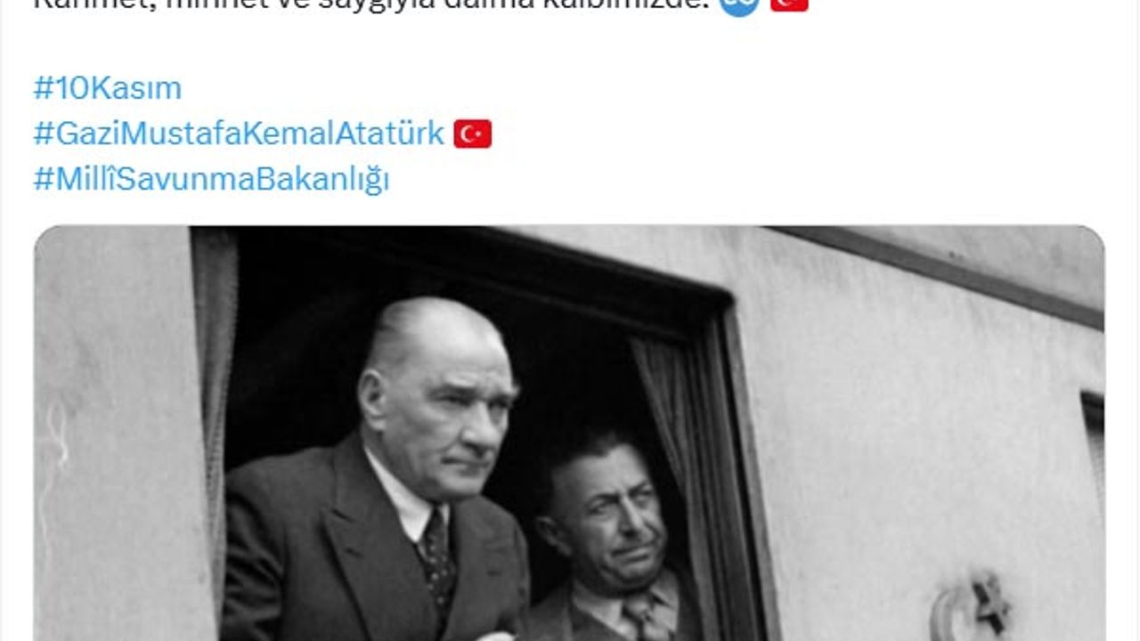 Bakanlığın sosyal medya hesabından Gazi Mustafa Kemal Atatürk'ün 87'nci vefat yıl dönümü nedeniyle video paylaşıldı. Atatürk'ün 'Ölüm, insanın değişmez kaderidir. Marifet, unutulmamaktır' sözü ve 'Rahmet, minnet ve saygıyla daima kalbimizde' notuyla paylaşılan videoda Atatürk'ün farklı görüntüleri, vatandaşlarla bir araya geldiği anları, geçmişte Anıtkabir'de yapılan anma törenlerine ait görüntüler ile TEKNOFEST'lerde gençlerin savunma sanayi ürünlerini incelerken görüntüleri yer aldı. Videoda, "Bir lider vardı, sözleri yüz yılı aşan, ışığı hiç sönmeyen, bir 10 Kasım daha aynı sessizlik, aynı hüzün, aynı minnet. Bir kaybı değil, bir mirası hatırlıyoruz. Düşünceleriyle çağının ötesine geçen bir adamı. Bir ulusa yalnızca özgürlüğü değil, kendi geleceğini kurma cesaretini veren bir yol göstericiyi. O, umudun ne demek olduğunu öğretti bu millete. En büyük eserim dediği Cumhuriyeti bizlere emanet etti. Her taşı alın teriyle, her satırı cesaretle yazılmış bir hikayeyi geleceğe taşıma sorumluluğunu verdi. Atatürk; adı geçmişte değil, geleceğin tam kalbinde duran. Çünkü Atatürk, yalnızca bir tarihin değil, bir geleceğin adıdır. 10 Kasım Atatürk'ü anmak değil Atatürk'ü anlamaktır" ifadeleri yer aldı. (DHA)