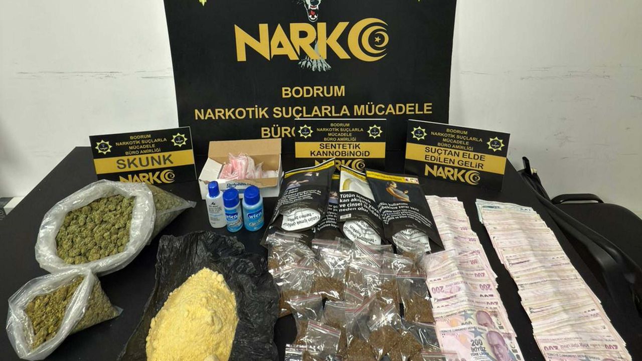 Fırat AKAY/BODRUM (Muğla), (DHA)- MUĞLA’nın Bodrum ilçesinde polisin otel odasına düzenlediği operasyonda çeşitli tür ve miktarlarda uyuşturucu ele geçirildi. Gözaltına alınan 2 şüpheli tutuklandı.