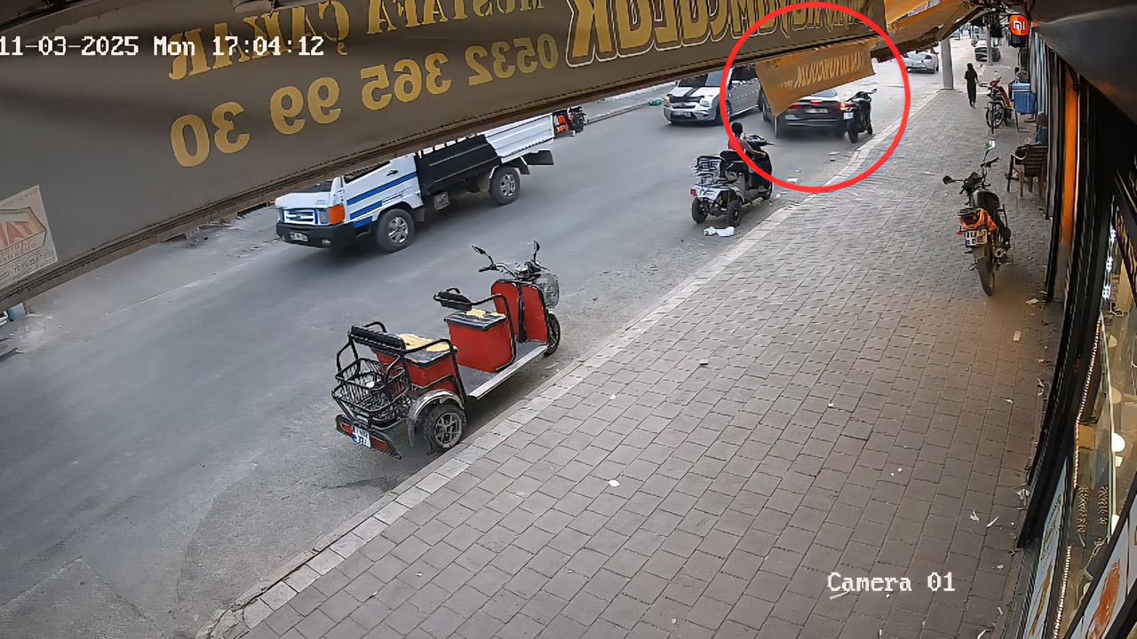 Serhat GÜLER/ ADANA, (DHA)- ADANA'da sürücüsünün kontrolünden çıkan otomobil, yol kenarında park halindeki motosiklete çarpıp, bir markete girdi. Bu sırada kaldırımda yürüyen bir yayanın kazayı fark edip, saniyelerle ezilmekten kurtulduğu anlar iş yerinin güvenlik kamerasına yansıdı.