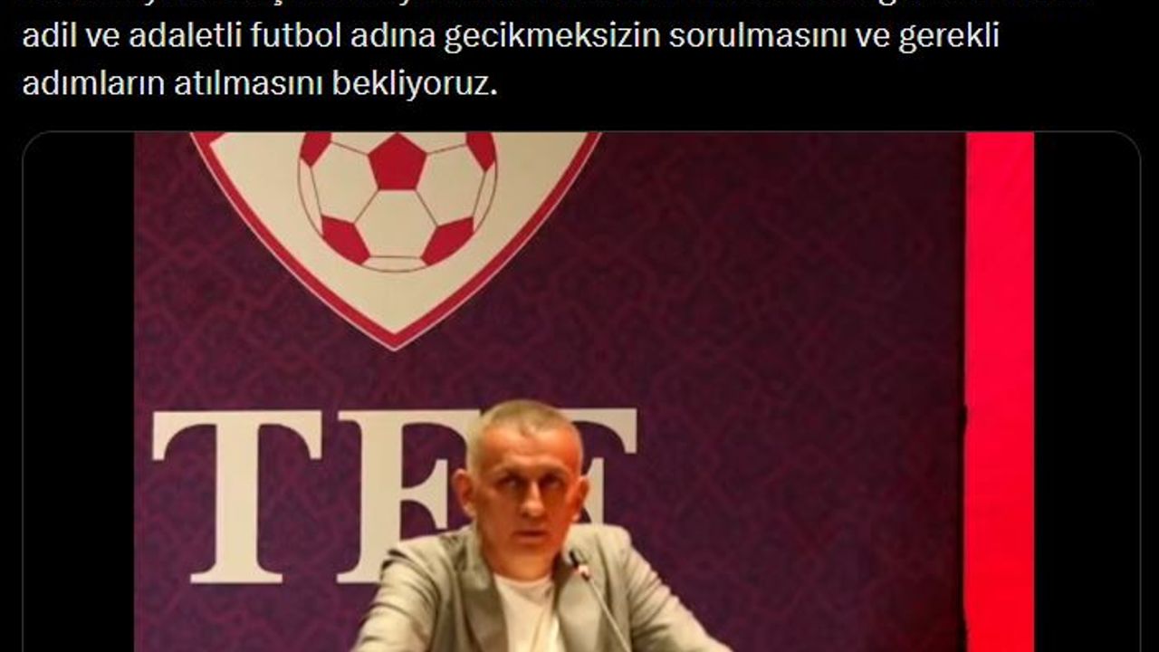 Samsunspor tarafından konuya ilişkin yapılan paylaşımda, “Dün akşam oynanan ve tüm futbol kamuoyu tarafından şaşkınlıkla izlenen karşılaşmada; bütün otoritelerin hemfikir olduğu şekilde, verilmeyen penaltımız nedeniyle açıkça gasp edilen 1 puanımızın hesabının, geçmişte yaptığı açıklamalara istinaden, Türkiye Futbol Federasyonu Başkanı Sayın İbrahim Ethem Hacıosmanoğlu tarafından adil ve adaletli futbol adına gecikmeksizin sorulmasını ve gerekli adımların atılmasını bekliyoruz” ifadelerine yer verildi. (DHA)