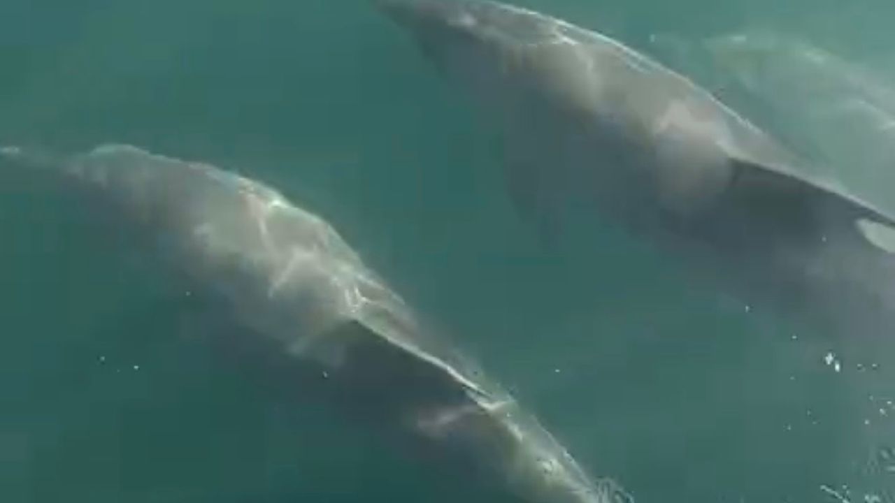 BARTIN'ın Kurucaşile ilçesinde balık tutmak için denize açılan Onur Conkur (35), cep telefonu kamerasıyla teknesinin yanında yüzen yunusları görüntüledi.