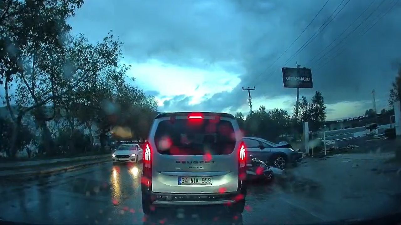 KAZA ANI KAMERADAOrhangazi ilçesinde ters şeride giren otomobile çarpan motosikletteki 2 kişinin yaralandığı kaza anı, başka otomobilin araç kamerasına yansıdı. (DHA)Hasan BOZBEY/ORHANGAZİ, (Bursa),(DHA)