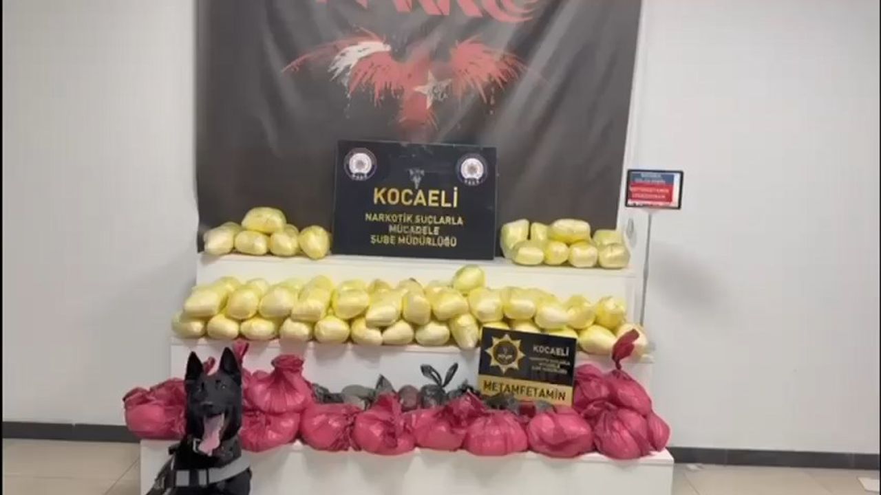 İl Emniyet Müdürlüğü Narkotik Suçlarla Mücadele Şube Müdürlüğü ekipleri, TEM Otoyolu’nda asfalt silindir makinesi yüklü TIR’ı durdurdu. Narkotik köpeği de kullanılan aramada TIR’ın dorsesinde yüklü bulunan asfalt silindir makinesinin silindir kısmına gizlenmiş 100 paket halinde 102 kilogram metamfetamin ele geçirildi.