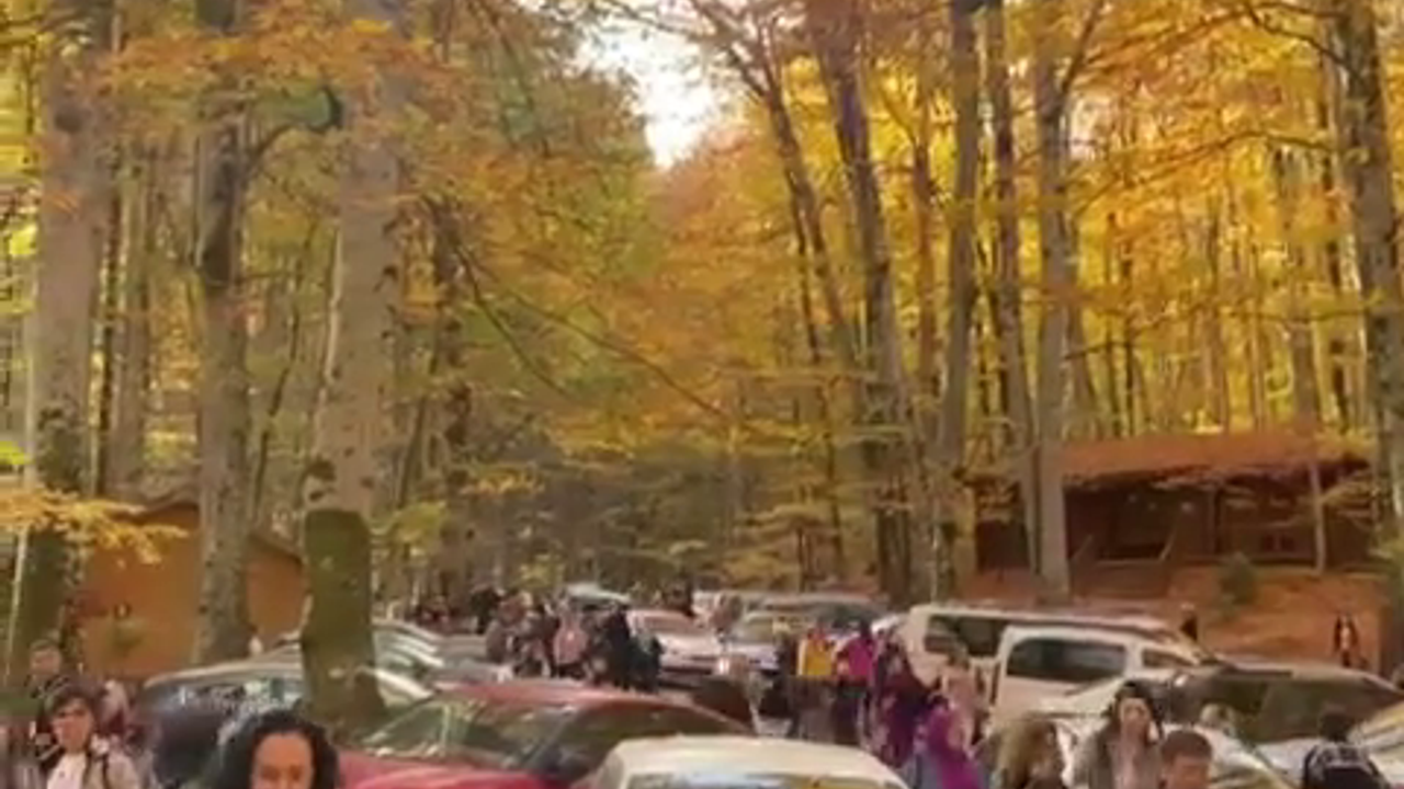 “Yedigöller Milli Parkı’nda yaşanan yoğun ziyaretçi ilgisi nedeniyle giriş ve çıkışlarda araç trafiği oluşmuştur. Siz değerli misafirlerimizin sonbaharın eşsiz güzelliklerini daha keyifli bir şekilde deneyimleyebilmesi için Abant Gölü Milli Parkı ve Gölcük Tabiat Parkı başta olmak üzere diğer tabiat parklarımıza yönelmenizi tavsiye ediyoruz. Anlayışınız ve doğaya gösterdiğiniz ilgi için teşekkür ederiz.” (DHA)