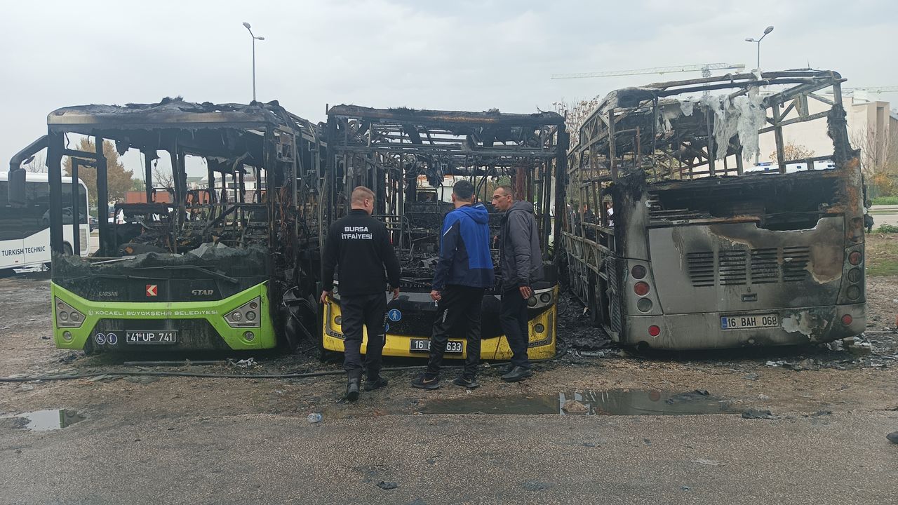 Osmangazi ilçesi Küçükbalıklı Mahallesi Hüdavendigar Bulvarı Ak Sokak'ta yetkili servise bakım için getirilen park halindeki 16 BAH 068 plakalı servis otobüsünde, saat 13.30 sıralarında yangın çıktı. Alevler kısa sürede yanındaki BURULAŞ'a ait 16 BBG 633 plakalı belediye otobüsü ile Kocaeli Büyükşehir Belediyesi'ne ait 41 UP 741 plakalı belediye otobüsüne sıçradı. Yan yana park halinde olan 3 otobüs dakikalar içinde alev topuna dönerken, zaman zaman patlamalar meydana geldi. O anlar, çevredekiler tarafından cep telefonuyla kaydedildi. Otobüslerden yükselen siyah duman, kentin birçok noktasından görüldü. İhbarla bölgeye çok sayıda itfaiye ekibi sevk edildi. Yangın, itfaiye ekipleri tarafından söndürülürken, otobüsler demir yığınına döndü. Yangının çıkış nedeniyle ilgili inceleme başlatıldı. (DHA)