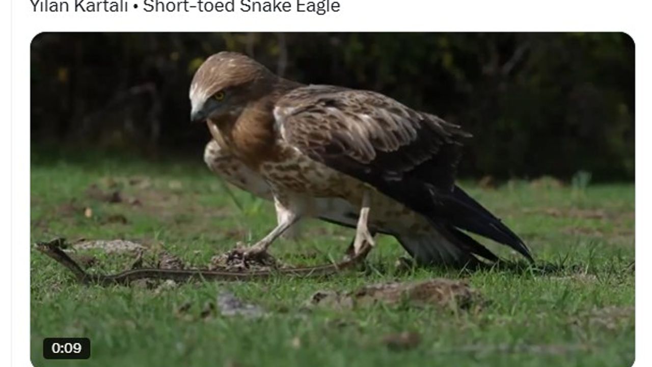 Görüntülerde, yılan kartalı tarafından yakalanan su yılanının kaçmaya çalıştığı, kartalın ise pençeleriyle avını etkisiz hale getirdiği görüldü.